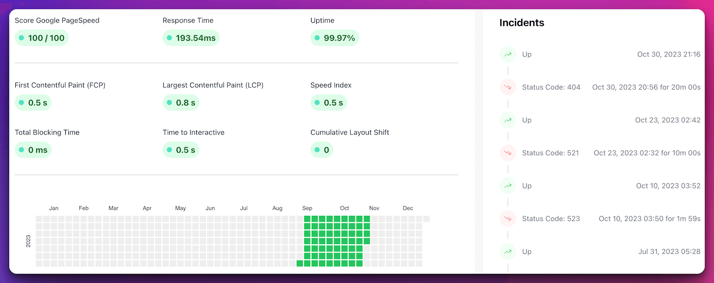 This proactive approach means you’re never in the dark. You’ll see clear data about your website’s speed, uptime percentage, and key performance metrics.