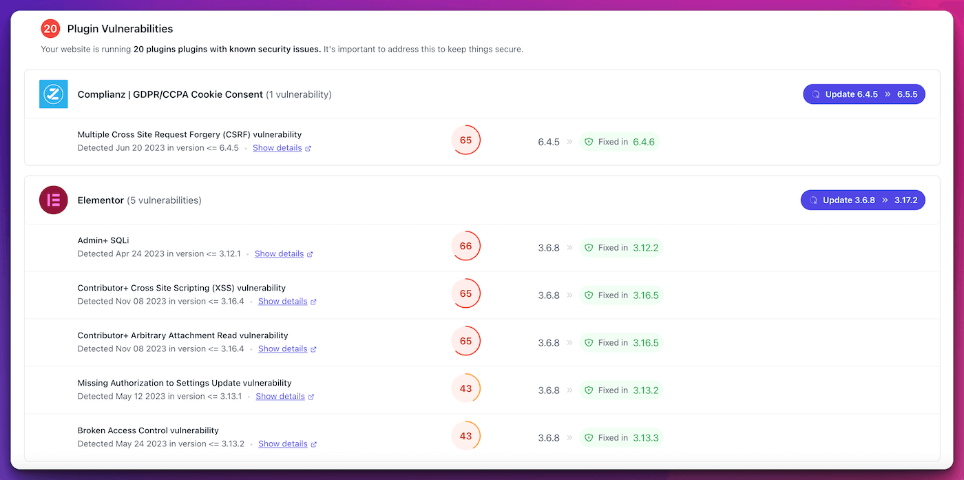 If a plugin becomes vulnerable or your site shows any sign of intrusion, our system flags it immediately and takes action.